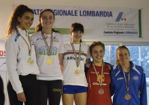 La 2^ giornata dei Campionati Regionali Lombardi Indoor di categoria nell'impianto indoor di Bergamo ha messo in evidenza i velocisti della nostra Società che si sono tutti migliorati ottenendo i loro primati personali. Hanno iniziato le Allieve che nei metri 60 piani hanno ottenuto: Emma Sforza, seconda nella 4^ serie con 8"24 (miglioramento di 1 decimo); Isabella Florio vincitrice dell' 8^ serie con 8"54 (miglioramento di 39 centesimi) e quarta nella stessa serie Alice Mattarozzi con 8"85 (miglioramento di 6 centesimi).