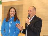 (fonte FIDAL Roma) Storie portate sul palco dai loro protagonisti ma anche raccontate da chi di atletica scrive. Tutto questo (e molto altro) è stata la Festa dell’atletica lombarda 2019 ospitata sabato 7 dicembre a Carugate (Milano) dall’auditorium della BCC Milano, partner del Comitato Regionale FIDAL Lombardia. Il pomeriggio è stato aperto da un gradito arrivo, quello di Eleonora Giorgi e del suo compagno di vita e di Nazionale, l’altro marciatore Matteo Giupponi. “È un piacere vedervi qui e vedere il vostro entusiasmo: ricordo molto bene con quanta tenacia ho anch’io gareggiato per vestire la maglia della selezione regionale prima di indossare quella dell’Italia”, ha detto la primatista europea e bronzo mondiale della 50 km di marcia ai tanti giovani atleti affiancata dal presidente del Comitato Regionale FIDAL Lombardia Gianni Mauri e dal vicepresidente di BCC Milano Giovanni Maggioni. La campionessa azzurra è anche la protagonista di copertina nel primo numero di “Voglia di Atletica”, la rivista FIDAL Lombardia destinata ogni due mesi a raccontare le belle storie dell’atletica regionale, scaricabile nella sezione dedicata del sito www.fidal-lombardia.it e “lanciata” ufficialmente durante la festa.